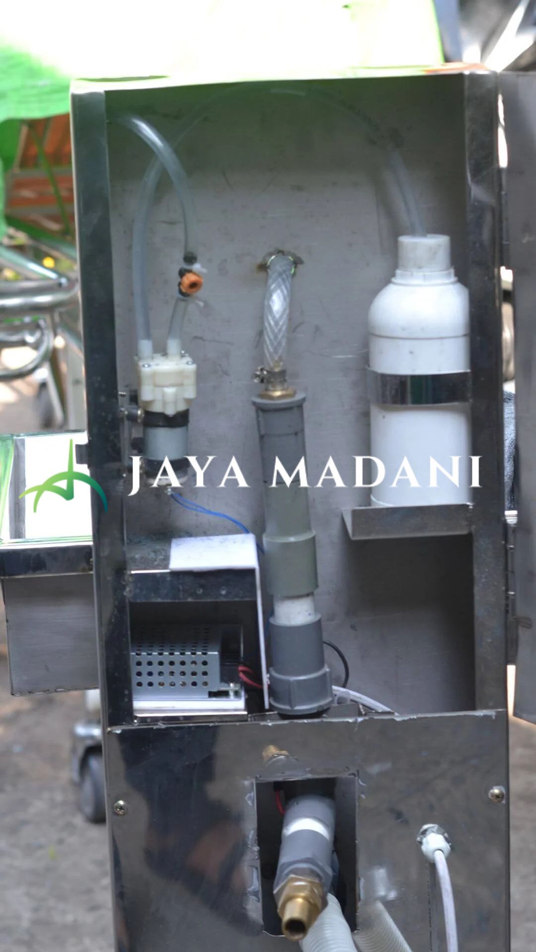Wastafel otomatis yang mengalirkan sabun dan air menggunakan sensor. Cocok untuk penggunaan di tempat ramai seperti mall dan hotel karena jerigen mampu menampung hingga 40 liter.